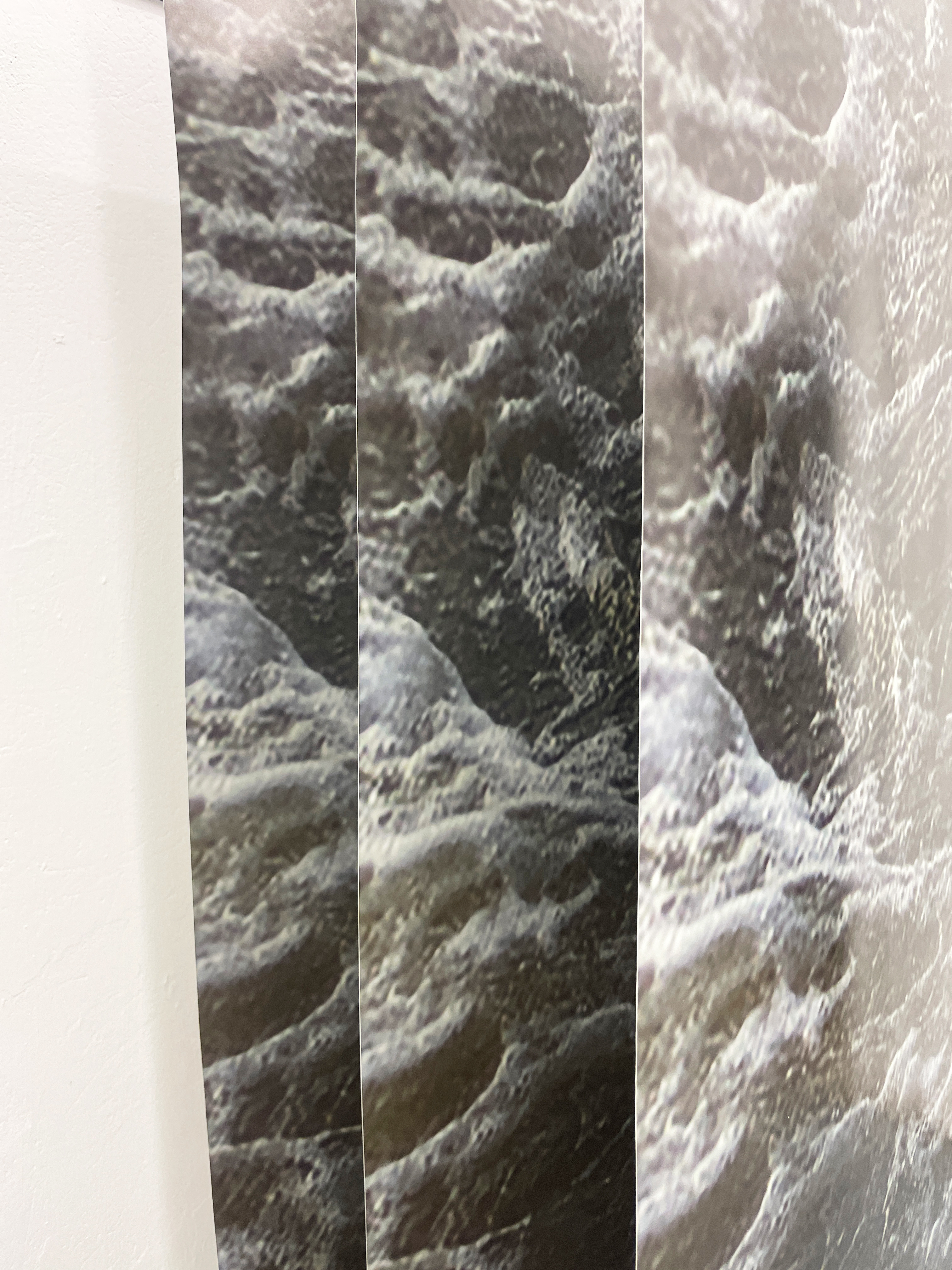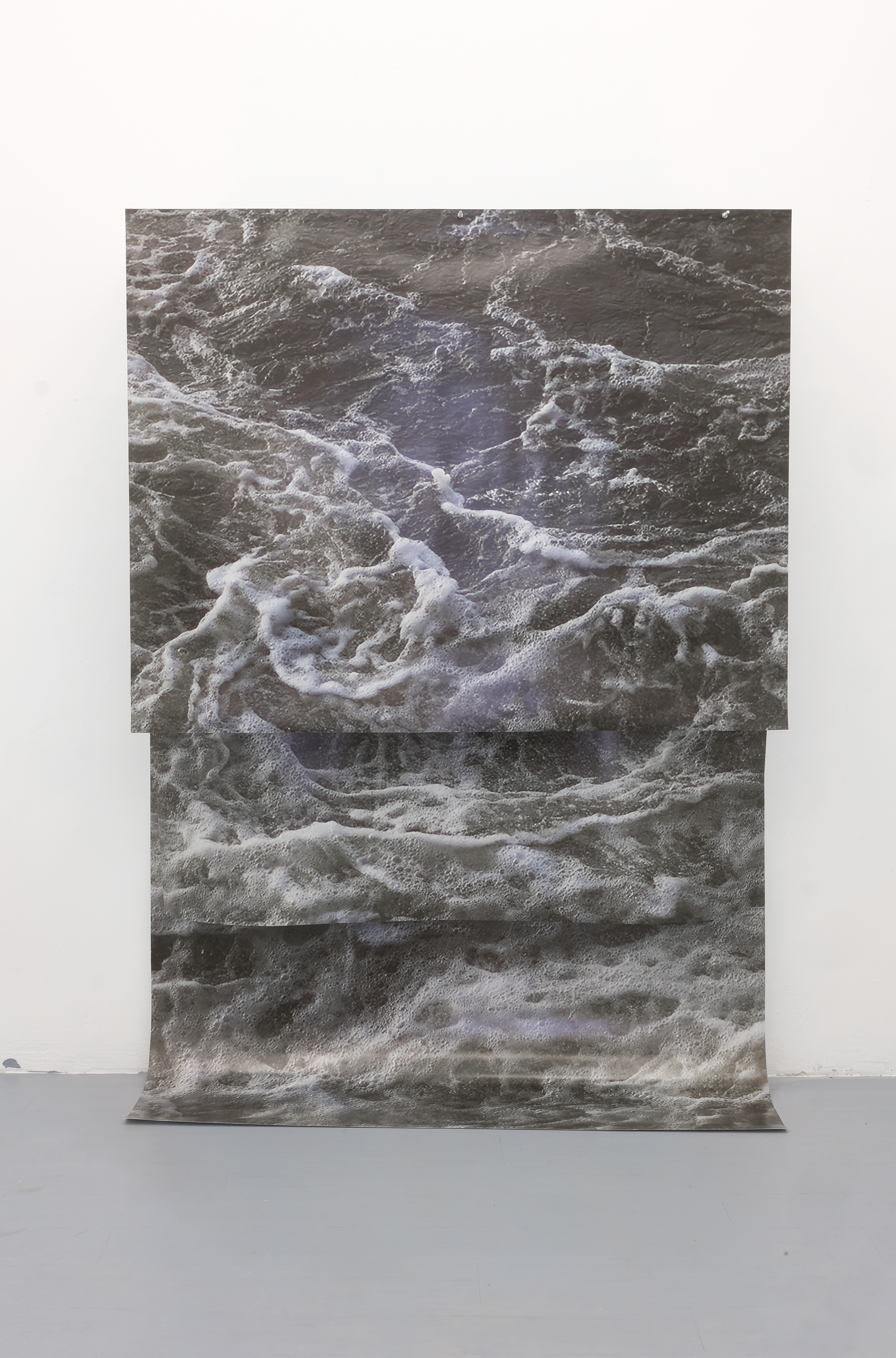 The photographic series Risse shows torn pieces of wallpaper, small cracks in walls and stones. The pictures were taken in his family home in Mosul and poetically describe the beginning of a drastic change and destruction. The photographs were shown for the first time as part of his diploma thesis Zer-Störung at the Academy of Visual Arts Leipzig. At PUTTE, they enter into an exchange with a later work Das Leiter, which deals with the still acute and sometimes deadly situation at the European border. People use ladders to try to climb over the border fence to Hungary. A loudspeaker announces in Arabic that anyone who crosses the fence without permission may be shot. The installation Déja vu shows an image of foaming water. Raisan Hameed took the photo in Bremen. In the installation, the water literally sloshes towards the visitors. For Hameed, the image represents his personal experience of flight, but as part of the artistic work it can be read from many perspectives. The artist developed a fourth work especially for the exhibition and installed it in front of the PUTTE.
